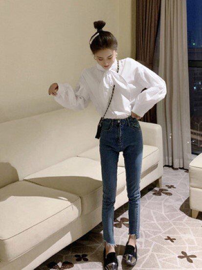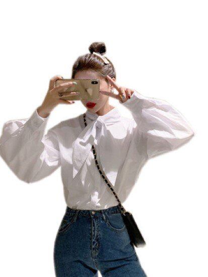長袖シャツ レディース ブラウス トップス 白シャツ ホワイト ネクタイ フロントボタン シンプル 無地 ベーシック 定番 カジュアル お出かけ オフィス OL 白ブラウス ゆったり ルーズシルエット