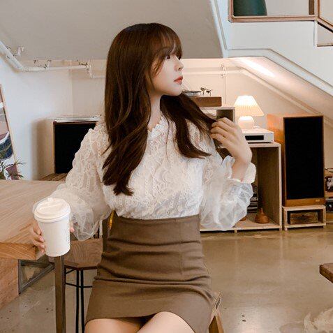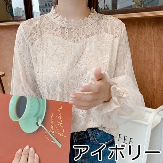 ブラウス レディース 長袖 白 シャツブラウス 花柄 ボリューム袖 バルーンスリーブ レース 総レース 花柄レース シフォン フォーマル お呼ばれ レースブラウス 透け感 立ち襟 フリルデザイン 甘め