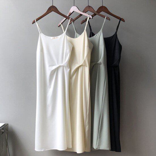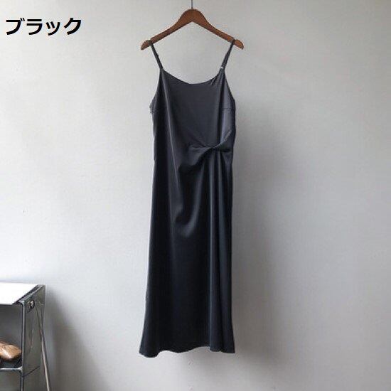 キャミソールワンピース レディース ワンピース ロングワンピース シンプル 無地 きれいめ カジュアル お出かけ おしゃれ 春夏 プルオーバー Vネック セクシー ツイストデザイン 光沢 エレガント