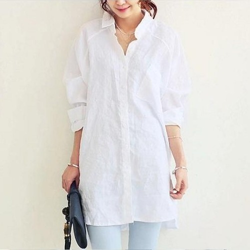 ロングシャツ シャツ シャツワンピース ロング丈 長袖 ロールアップ 襟付き シャツワンピ チュニック ブラウス ゆったり 大きいサイズ レディース カジュアル ロングシャツ シャツ シャツワンピース