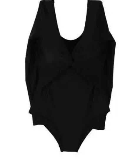 ワンピース水着 レディース 水着 長袖 ラッシュガード 日焼け防止 UV対策 Vネック ツイストデザイン シンプル 無地 カジュアル おしゃれ 海 ビーチ プール スイムウェア ビーチウェア 夏