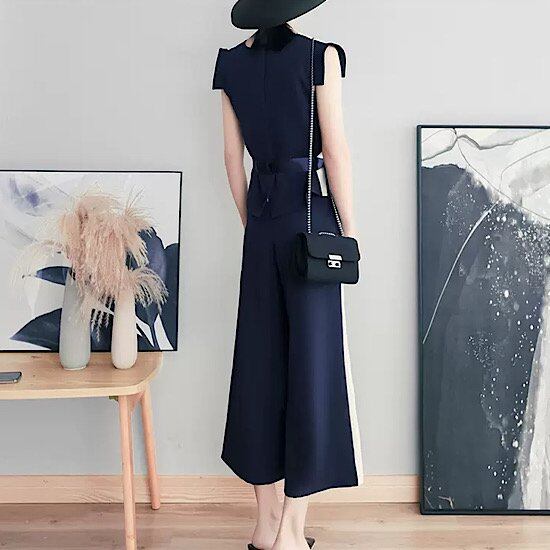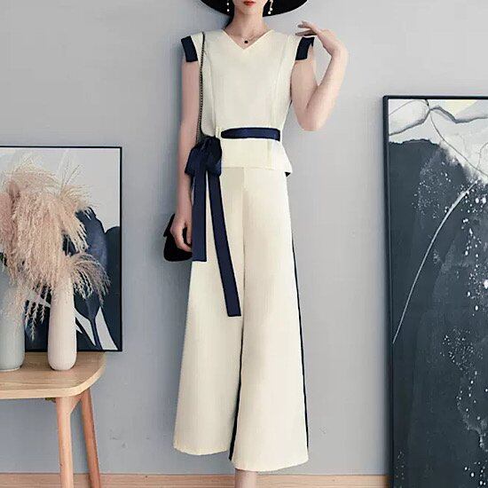 結婚式ドレス シンプル パンツドレス ノースリーブ ワイドレッグ ウエストリボン Vネック 発表会 演奏会 レディース 結婚式 ステージ衣装 ロング丈 エレガント カラードレス 無地