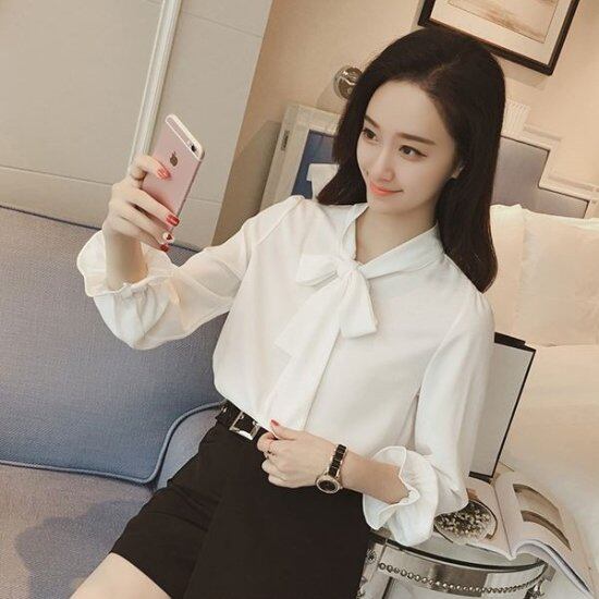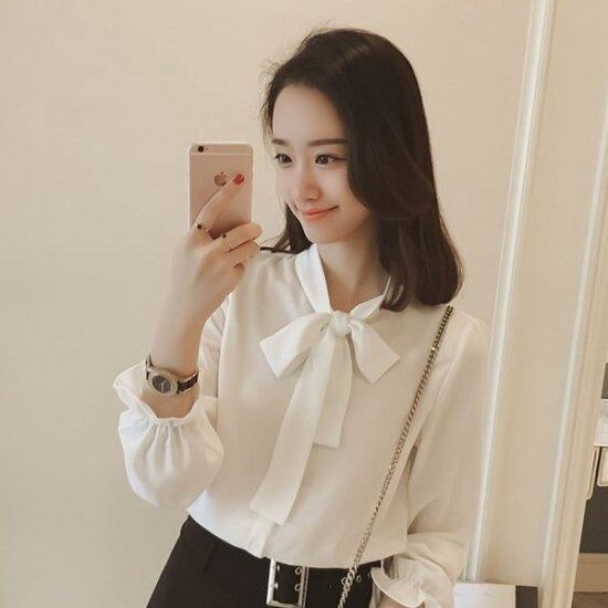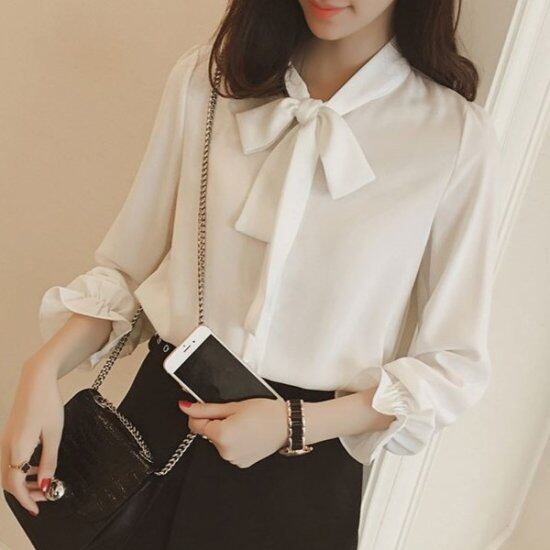 ブラウス シャツ リボンブラウス レディース キャンディスリーブ ボウタイブラウス 長袖ブラウス 無地 シンプル シフォン 白 ホワイト かわいい きれいめ フェミニン おしゃれ オフィス デート