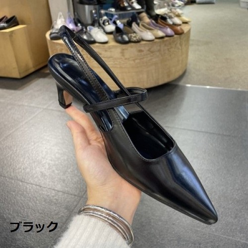 パンプス レディース シューズ ミュール ポインテッドトゥ スリングバック ヒール シンプル 無地 カジュアル お出かけ おしゃれ きれいめ 通勤 オフィス OL 歩きやすい 履きやすい PU 女性