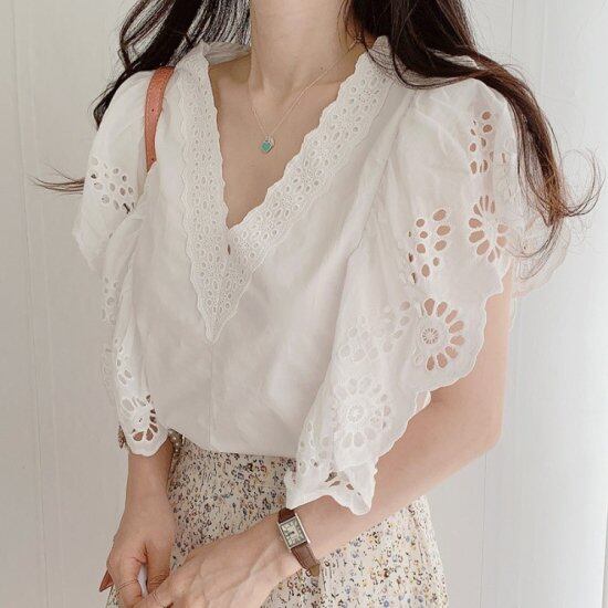 ブラウス レディース ノースリーブ レース フリル Vネック シャツ フレアスリーブ 花柄 シャツブラウス 春夏 夏 フリル袖 白ブラウス 黒ブラウス ノースリーブブラウス フリルブラウス 可愛い
