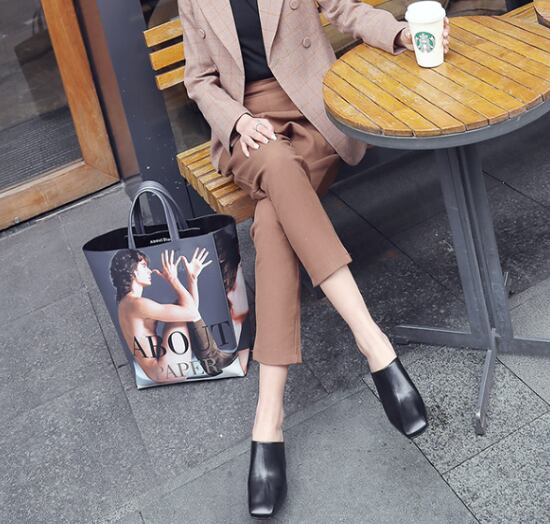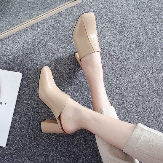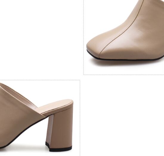 ミュール レディース 靴 シューズ ヒール 太ヒール チャンキーヒール シンプル 無地 スクエアトゥ 牛革 レザー カジュアル お出かけ おしゃれ 美脚 脚長 履きやすい 歩きやすい ミュール 女性