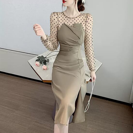 透け感たっぷりの大人なパーティードレス。 肩から袖にかけてのシースルーレースデザインがセクシーな印象をつくります! タイトシルエットで大人な雰囲気がさらにアップ♪ 裾にスリットが入り動きやすさにも気を配っています★ 【カラー】 ブラック、コーヒー 【サイズ】 S、M、L、 XL S 着丈:103cm バスト:84cm 袖丈:60cm 肩幅:33cm M 着丈:104cm バスト:88cm 袖丈:61cm 肩幅:34cm L 着丈:105cm バスト:92cm 袖丈:62cm 肩幅:35cm XL 着丈:106cm バスト:96cm 袖丈:63cm 肩幅:36cm ※測り方によって1-2cmの誤差が生じる場合が御座います。 ※モニターの発色により実際と異なる場合があります。 fkh-961 結婚式ドレス ドット柄 シースルー 長袖 スリット フレンチ メッシュ セクシー 発表会 演奏会 レディース 結婚式 ステージ衣装 ミモレ丈 エレガント ウエディングドレス カラードレス こちらの商品は海外からの【お取り寄せ商品】となります。 ご注文確定後(入金確認後)、海外よりお取り寄せさせていただきます。 お届けまで3週間前後お時間をいただいております。 数あるショップの中からご覧いただきありがとうございます。 以下のショップ注意事項をご確認いただき、ご購入をお願い致します。 ※注意事項※ ●トラブル防止の為、遠慮なくメールにてご質問下さい。 ●当店の商品は海外からのお取り寄せ商品になります。 ●カラーやイメージが違う、実寸が違う等を気にされる方のクレーム、返品、交換は一切お受けしておりません。 そのような方のご購入は予めご遠慮下さい(初期不良に関しては返品交換の対応をさせていただきます)。 ●海外製品は多少の縫製ミス、糸のほつれ、細かい不具合、多少の色の違い、イメージ違い等がごく稀にございます。 検品は徹底しておりますので、ご理解の上ご購入をお願い致します。 ●お届けまで注文確定後3週間程度となります。 ●ご注文を頂いても海外のメーカーにて完売の場合は、商品をお届けする事ができませんのでキャンセルとさせていただく場合がございます。 ●お客様の個人情報は発送以外に使用することは一切ございません。 ●ご注文確定後のお客様都合によるキャンセル、サイズ・カラーの変更はお受けすることが出来ません。