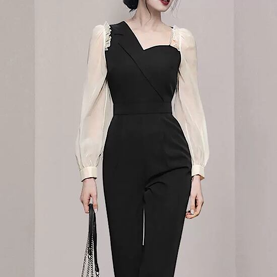 結婚式ドレス パンツドレス アシンメトリー 長袖 個性的 シンプル 発表会 演奏会 レディース 結婚式 ステージ衣装 ロング丈 エレガント ウエディングドレス カラードレス パンツスーツ