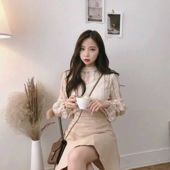 ブラウス レースブラウス プルオーバー レディース シャツ ハイネック スタンドカラー ランタンスリーブ ボリューム袖 レトロ クラシカル かわいい きれいめ ガーリー おしゃれ パーティー