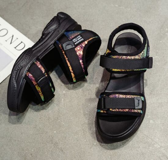 サンダル レディース 靴 シューズ スポーツサンダル スポサン 厚底 カジュアル スポーティー 歩きやすい 疲れにくい 履きやすい お出かけ おしゃれ ベルクロ ファッションサンダル 女性 ブラック