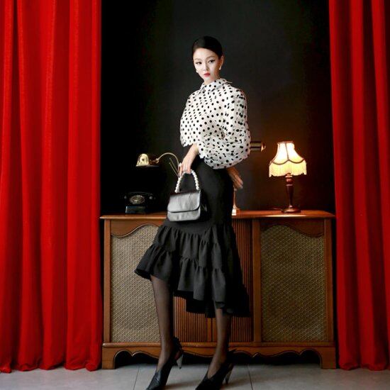 ブラウス ドット柄 レディース シャツ 長袖 水玉 パフスリーブ ボリューム袖 透け感 シアー レトロ クラシカル ヴィンテージ きれいめ かわいい フェミニン ガーリー おしゃれ パーティー
