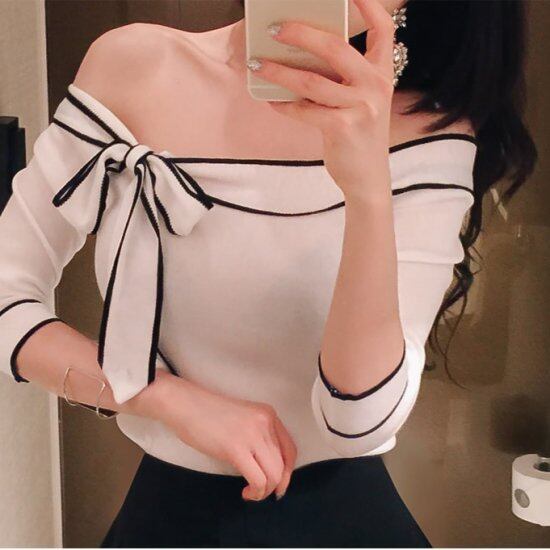 ニット ニットトップス オフショルダー 薄手 薄手ニット マリンテイスト スリム フィット レディース おしゃれ きれいめ おしゃれ 通勤 お出かけ カジュアル ニット ニットトップス オフショルダー
