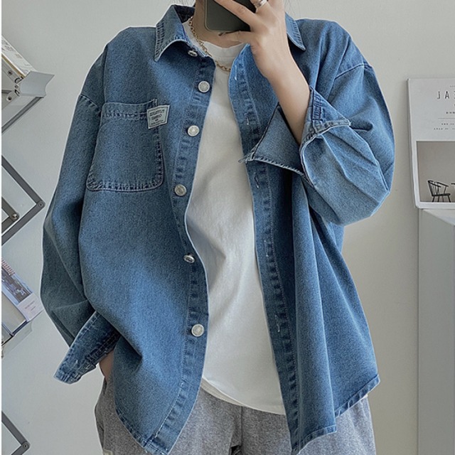 デニムシャツ 長袖 ビッグシルエット レディース ジャケット アウター トップス デニム 春服 秋服 ロングシャツ カジュアル Gジャン オーバーシャツ デニムシャツ 長袖 ビッグシルエット