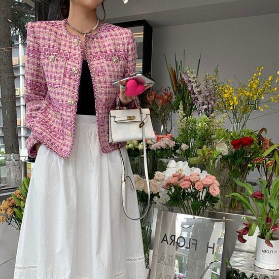 ツイードジャケット ノーカラージャケット ゴールドボタン レディース アウター 春 長袖ジャケット フォーマル セレモニー 通勤 ツイード ツイードジャケット ノーカラージャケット パールボタン