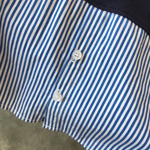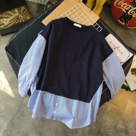 シャツ レディース ブラウス ドッキングプルオーバー 異素材MIX ストライプ カットソー コットンシャツ ドッキングシャツ ネイビー かわいい カジュアル パッチワーク ストライプシャツ おしゃれ