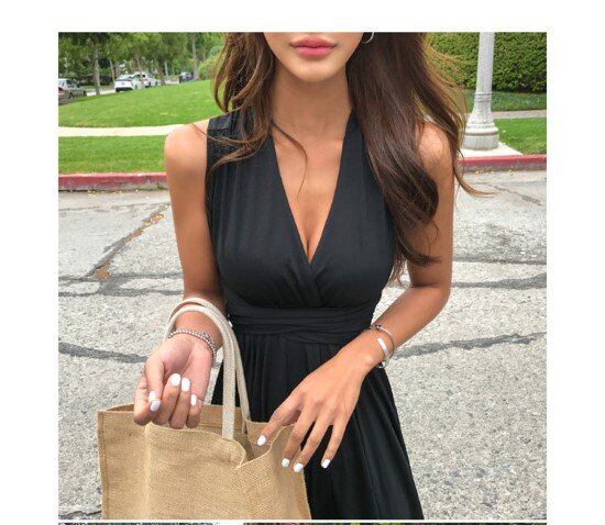 ロングワンピース レディース ワンピース ロング丈 Vネック バッククロス ノースリーブ ハイウエスト 黒 ブラック リゾートワンピース バカンス 夏 カジュアル お出かけ おしゃれ ワンピース 女性