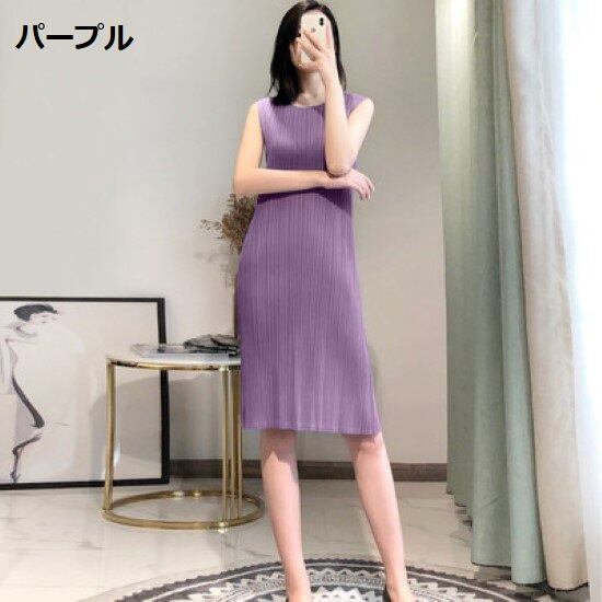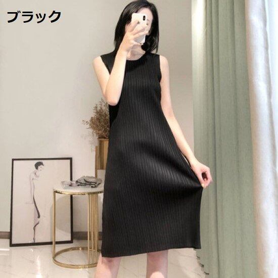 ノースリーブワンピース レディース ワンピース ラウンドネック プルオーバー 膝丈ワンピース プリーツ シンプル 無地 カジュアル お出かけ おしゃれ きれいめ 夏 ノースリーブワンピース 女性