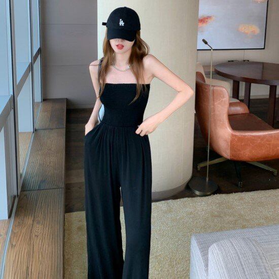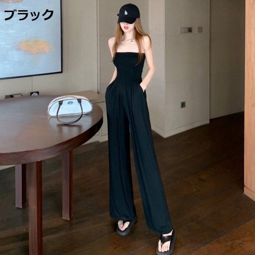 ジャンプスーツ レディース オールインワン チューブトップ ハイウエスト シンプル 無地 パンツ 長ズボン カジュアル セクシー おしゃれ お出かけ 夏 ワイドパンツ リゾート ジャンプスーツ 女性