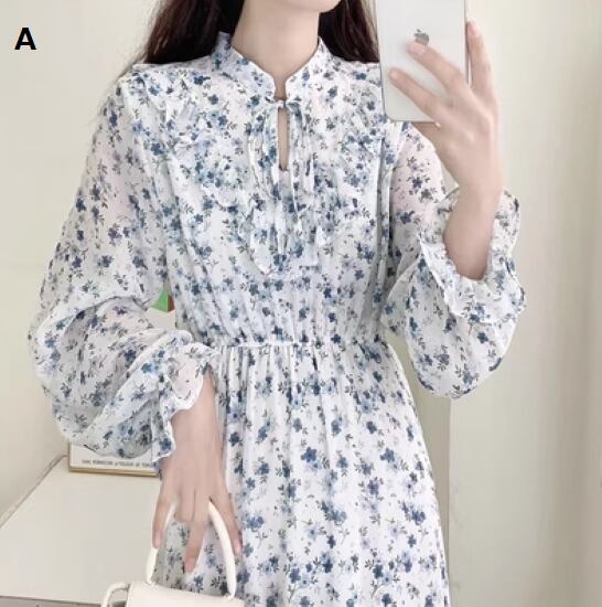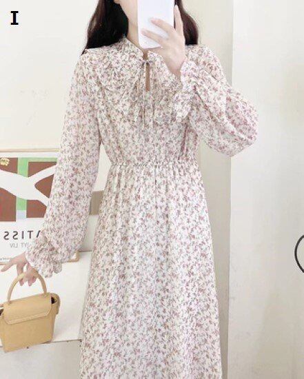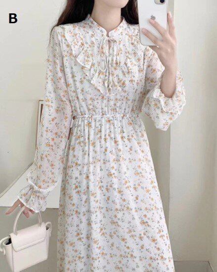 花柄ワンピース レディース ワンピース 小花柄 フラワー シフォンワンピース 総柄 フリル スタンドカラー フリル 総柄 ガーリー フェミニン カジュアル プルオーバー おしゃれ お出かけ きれいめ