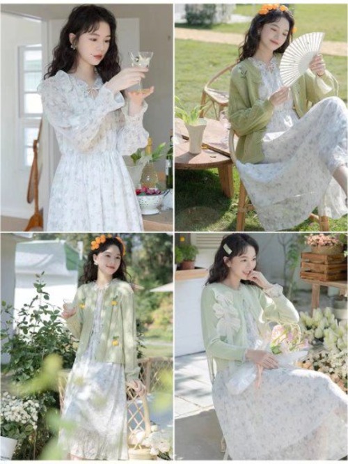 花柄ワンピース レディース ワンピース フラワー 総柄 シフォンワンピース フリル プルオーバー 長袖 フェミニン ガーリー リボン Aラインスカート カジュアル お出かけ おしゃれ ハイウエスト