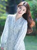 シフォンワンピース レディース ワンピース 総柄 長袖 Vネック 春夏 ロングワンピース カジュアル お出かけ おしゃれ きれいめ フェミニン 可愛い ブルー 青 プルオーバー 花柄 ハイウエスト