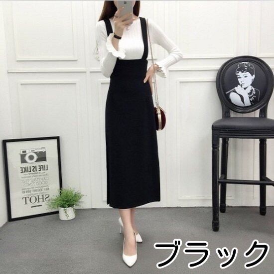 サロペットスカート レディース 大きいサイズ ジャンパースカート ジャンスカ ロング サスペンダー スカート オーバーサイズ スカート 春 バッククロス スリット 重ね着 吊りスカート サロペスカート