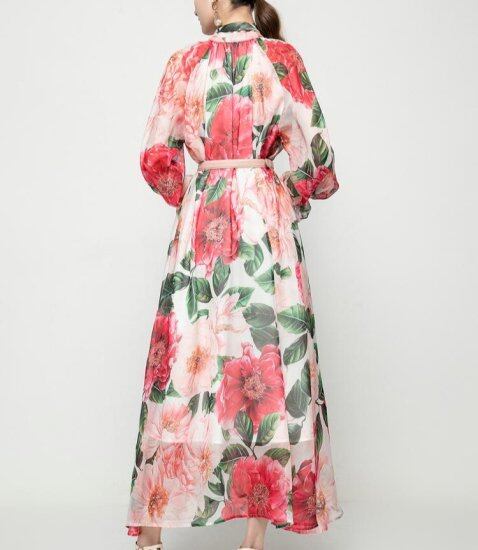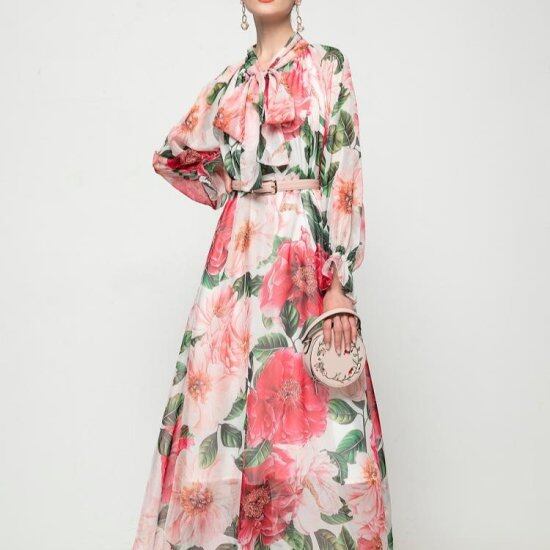 ワンピース レディース 花柄 ロングワンピース ボウタイ リボン ロング丈 マキシ丈 花柄ワンピース フラワープリント プリントワンピース 総柄 レトロ クラシカル きれいめ 上品 エレガント 長袖