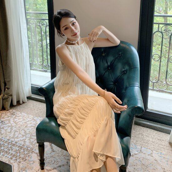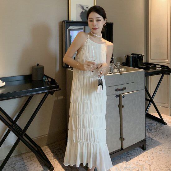 ワンピース レディース ドレス シャーリングワンピース ティアードワンピース ホルターネック ノースリーブ ロング キャミソール かわいい きれいめ ガーリー おしゃれ パーティー リゾート