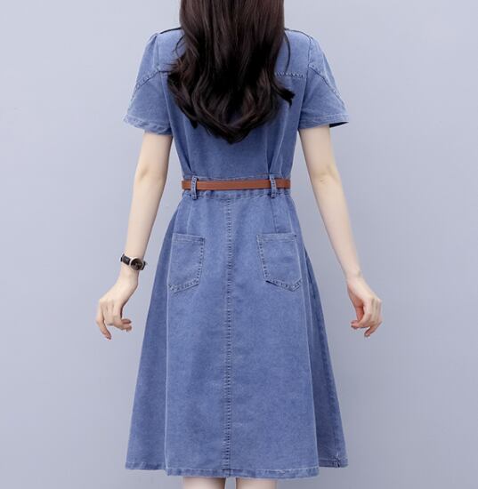 デニムワンピース レディース ワンピース シャツワンピース 半袖ワンピース 襟あり ポロ襟 フロントボタン Aラインスカート 胸ポケット カジュアル お出かけ おしゃれ 春夏 デニムワンピ 女性