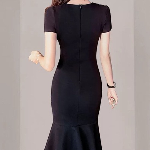 結婚式ドレス マーメイドスカート 半袖 ラウンドネック ライン入り ひざ丈 発表会 演奏会 レディース 結婚式 ステージ衣装 エレガント ウエディングドレス カラードレス イブニングドレス