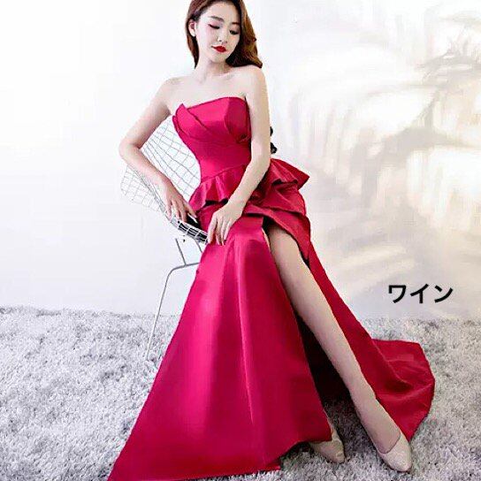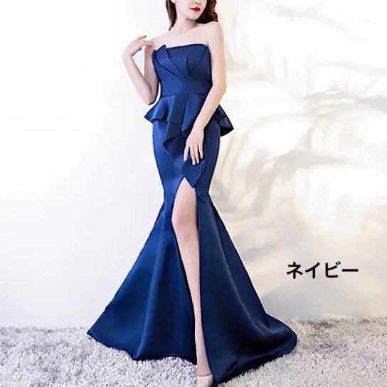 結婚式ドレス チューブトップ スリット ロング丈 無地 シンプル 発表会 演奏会 レディース 結婚式 ステージ衣装 エレガント ウエディングドレス カラードレス イブニングドレス マキシ丈