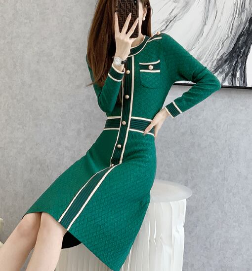 ニットワンピース レディース ワンピース 長袖ワンピース 膝丈ワンピース ミドル丈 ゴールドボタン 金ボタン ラウンドネック きれいめ カジュアル お出かけ おしゃれ フォーマル お呼ばれ 女性