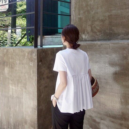 バックフレア Tシャツ カットソー トップス 夏 白Tシャツ 半袖 バックフレアシャツ バックフリルデザイン レディース 大きいサイズ 無地 体型カバー バックフレア Tシャツ カットソー