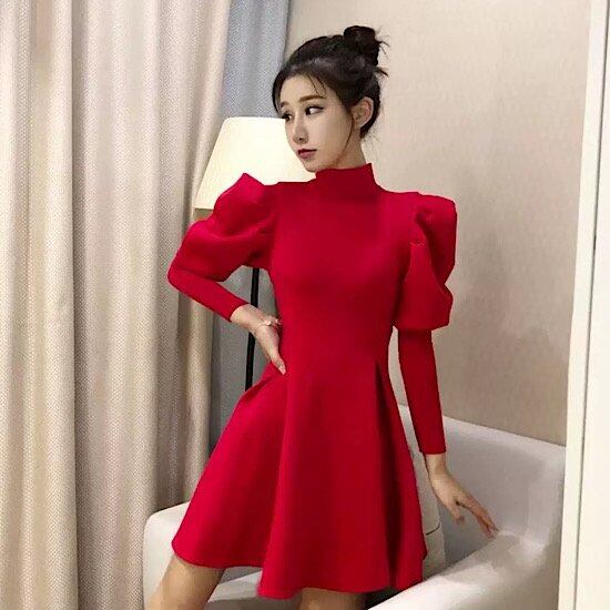 結婚式ドレス フレアスカート ラグジュアリー パフスリーブ ミニドレス 無地 発表会 演奏会 レディース 結婚式 ステージ衣装 エレガント ウエディングドレス カラードレス イブニングドレス