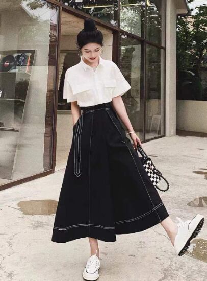 セットアップ レディース 上下セット 2点セット トップス ボトムス 半袖シャツ ポロ襟 ワイドパンツ ズボン コントラストカラー モノトーン カジュアル お出かけ おしゃれ ハイウエスト ツーピース