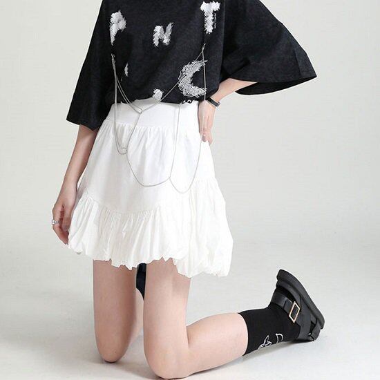 ミニスカート 裾フリル バルーンスカート スカート ボトムス ミニ丈 ハイウエスト ボリュームスカート ミニスカ 膝上 ショート丈 フレア フェミニン ミニスカート 裾フリル バルーンスカート