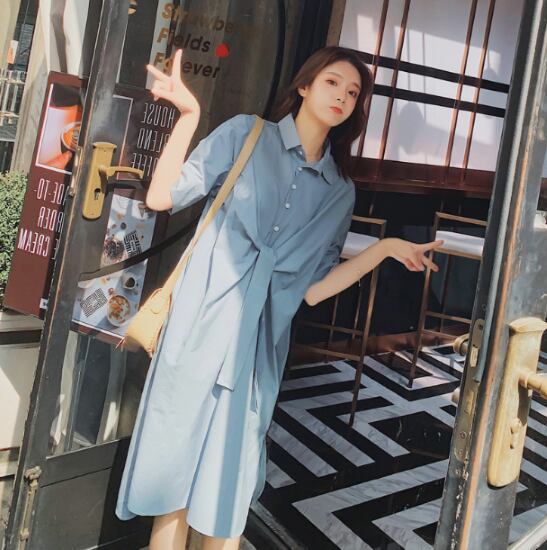 シャツワンピース レディース ワンピース 膝丈ワンピース 半袖ワンピース ウエストマーク ハイウエスト シンプル 無地 シャツワンピ 大きいサイズ ボタン カジュアル お出かけ 春夏 ワンピース 女性