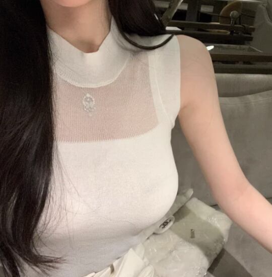 タンクトップ レディース トップス ノースリーブ ニットトップス ハイネック スタンドカラー スリムフィット ホワイト ブラック 白 黒 カジュアル お出かけ おしゃれ きれいめ 春夏 シースルー