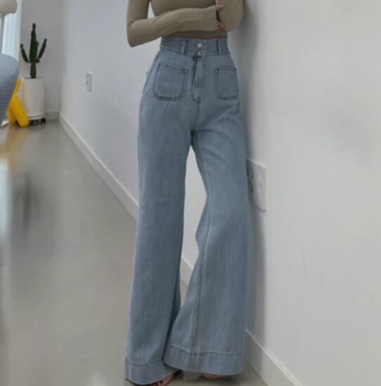 デニムパンツ レディース ボトムス ジーンズ ジーパン ワイドレッグ ワイドパンツ ハイウエスト ゆったり カジュアル お出かけ おしゃれ デニム 定番 ベーシック ポケット デニムパンツ ジーパン