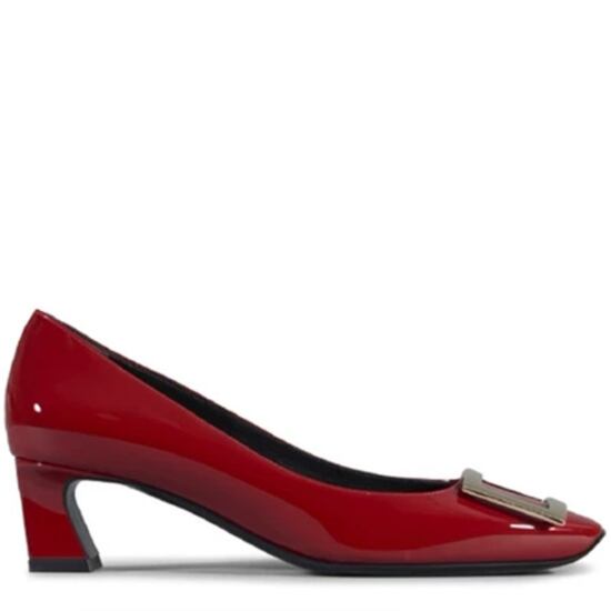 パンプス レディース 靴 シューズ スクエアトゥ 太ヒール チャンキーヒール スクエアバックル パテントレザー カジュアル お出かけ おしゃれ きれいめ フォーマル お呼ばれ 通勤 オフィス OL