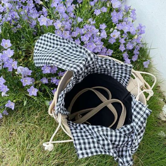 ハンドバッグ レディース かごバッグ カゴバッグ ワンハンドル 鞄 かばん チェック柄 ギンガムチェック バケットバッグ ショルダーバッグ 織バッグ 肩掛けバッグ 斜め掛けバッグ カジュアル お出かけ
