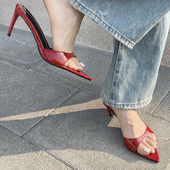 ミュール ポインテッドトゥ ハイヒール オープントゥ サンダル ピンヒール レディース きれいめ パーティー 大人 ヒール 脚長 美脚サンダル 春夏 ミュール ポインテッドトゥ ハイヒール