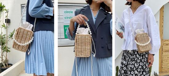 ハンドバッグ レディース ショルダーバッグ ミニバッグ スクエアバック コンパクト ポシェット バスケット かごバッグ カゴバッグ パール 肩掛けバッグ 斜め掛けバッグ ストローバッグ 2WAY