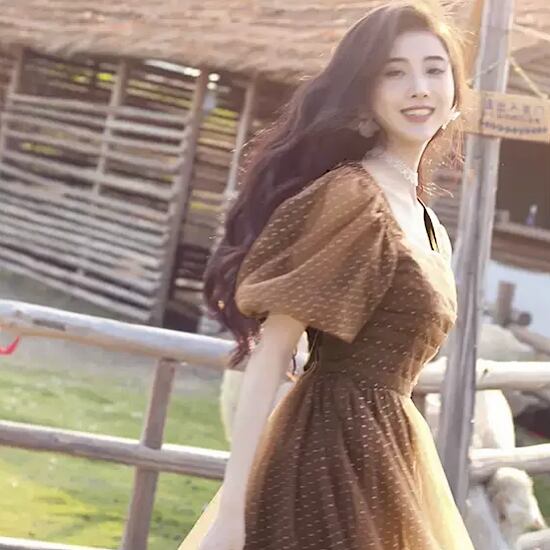 結婚式ドレス フレンチ レトロ 水玉 メッシュ スクエアネック パフスリーブ 発表会 演奏会 レディース 結婚式 ステージ衣装 エレガント ウエディングドレス カラードレス イブニングドレス