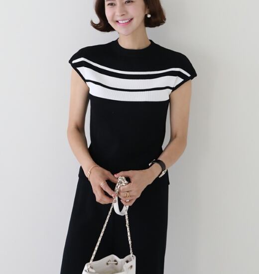 セットアップ レディース 上下セット ツーピース ニット トップス ラウンドネック ボトムス 長ズボン バイカラー コントラストカラー 配色デザイン カジュアル お出かけ シンプル 無地 ワイドパンツ