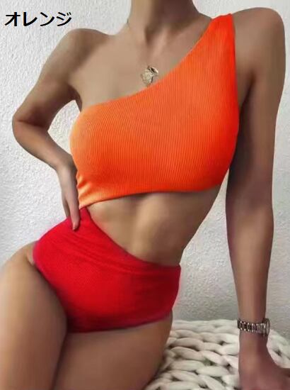 ワンピース水着 レディース 水着 ワンショルダー サイドオープン シンプル 無地 セクシー 配色デザイン バイカラー カジュアル カラフル 夏 海 リゾート 海水浴 プール ビートウェア スイムウェア