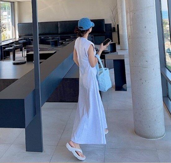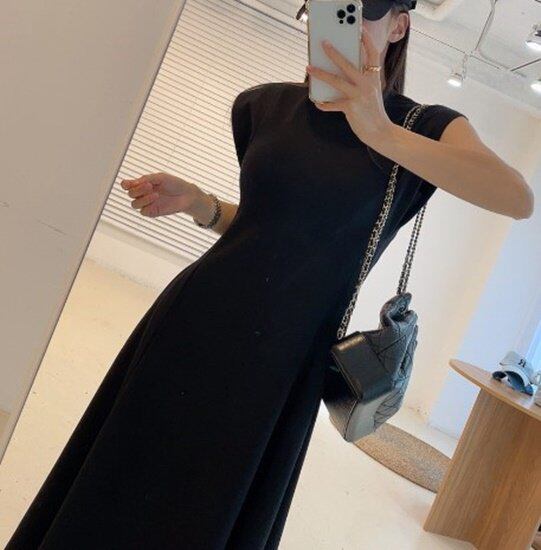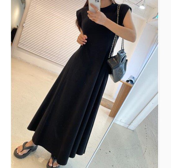 ロングワンピース レディース マキシ丈 フレンチスリーブ サイドタック ワンピース ラウンドネック フレアースカート シンプル ハイウエスト ロングスカート Aラインスカート Tシャツドレス おしゃれ