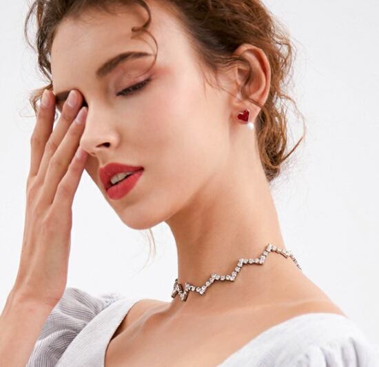 チョーカー レディース アクセサリー ネックレス ギザギザ型 ラインストーン ジュエリー ファッション きらきら ウエーブ きれいめ エレガント カジュアル おしゃれ ファッション チョーカー 女性