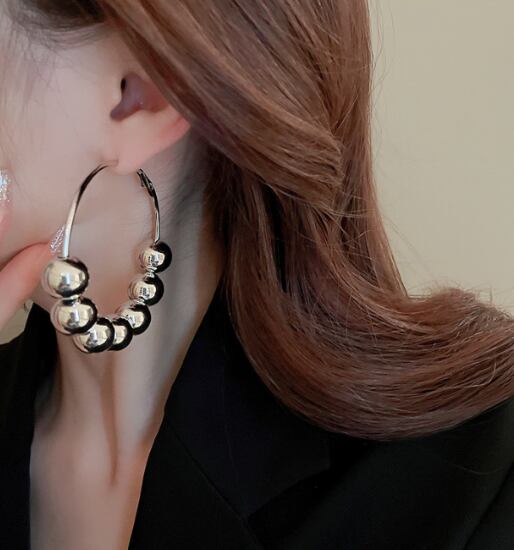 フープピアス レディース アクセサリー ピアス キャッチレス 大きめ ボール 存在感 個性的 シルバー 銀 カジュアル きれいめ おしゃれ エレガント ビッグ ファッション フープピアス 女性 アクセ