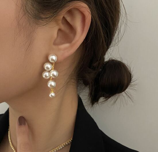 ピアス レディース アクセサリ パール 6連 ドロップピアス ジュエリー ファッション きれいめ エレガント おしゃれ カジュアル お呼ばれ パーティー 結婚式 華やか 可愛い ピアス 6連パール